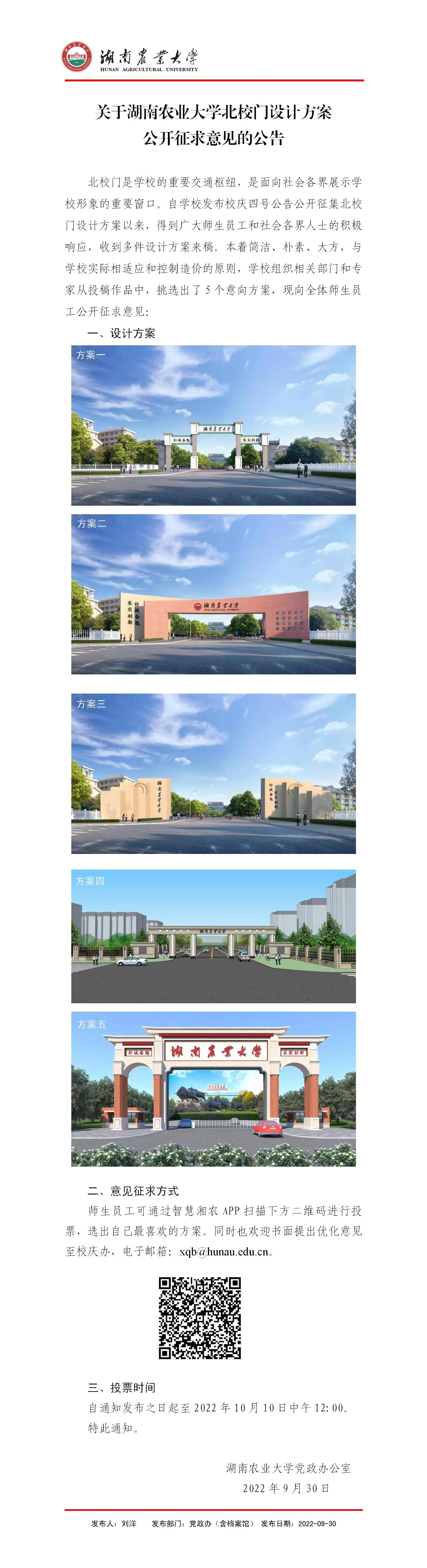 关于湖南农业大学北校门设计方案公开征求意见的公告