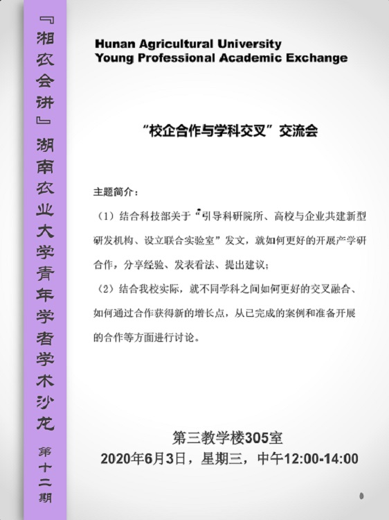湘农会讲:湖南农业大学青年学者学术沙龙第十二期“校企合作与学科交叉”交流会